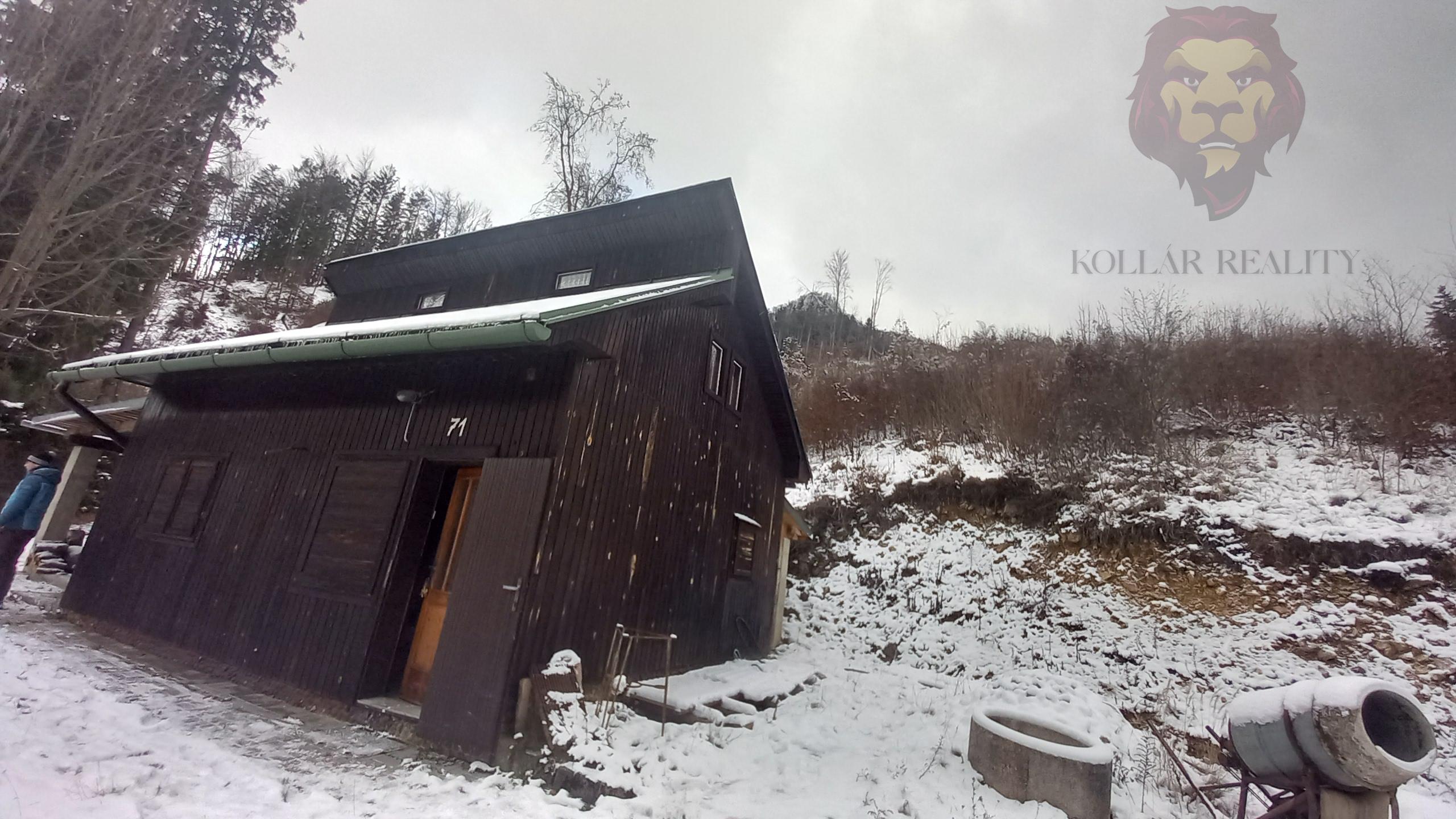 Na predaj útulná poschodová chata (36 m²) v Sklabinskom Podzámku, zasadená do tichej prírody v Kantorskej doline, priamo na južne orientovanom svahu pod Katovou skalou.